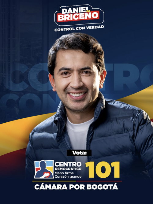 Mi nombre es Daniel Briceño. Soy bogotano, abogado y comprometido con la verdad. Tengo una especialización en derecho público y una maestría en análisis político y electoral. Trabajé como asesor en el Concejo de Bogotá hasta que, gracias a la confianza de más de 49 mil bogotanos, fui elegido el Concejal más votado del Partido Centro Democrático en Bogotá.
